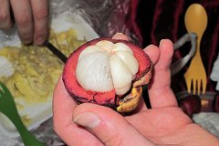 a mangosztán belső, fehér részét eszik |