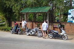 motorokat béreltünk Moon úrtól, aki éppen tankolja őket |